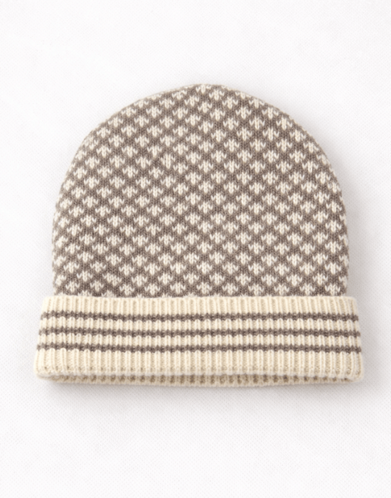 Designul clasic, cu model geometric discret în nuanțe de crem și bej, este ușor de asortat cu diverse ținute. Manșeta elastică asigură o fixare sigură și confortabilă, fără a strânge, făcând acest fes o alegere practică pentru plimbări sau pentru a fi oferit cadou.
