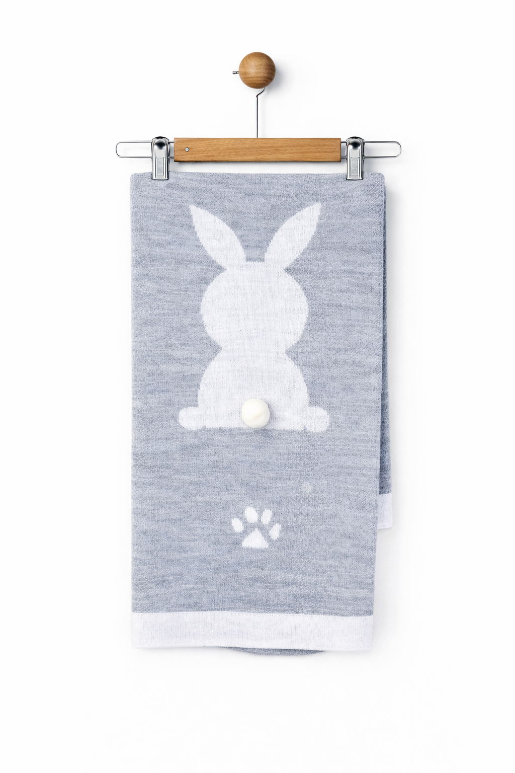 Păturică pentru bebeluși din bumbac, gri, cu imprimeu iepuraș alb – unisex
