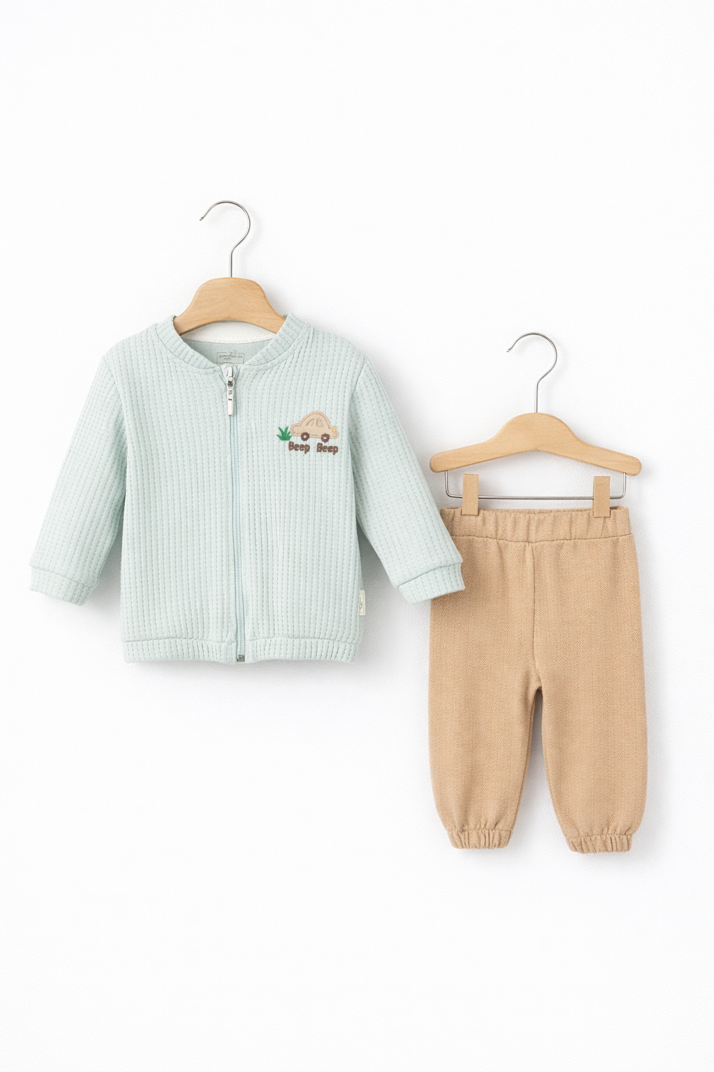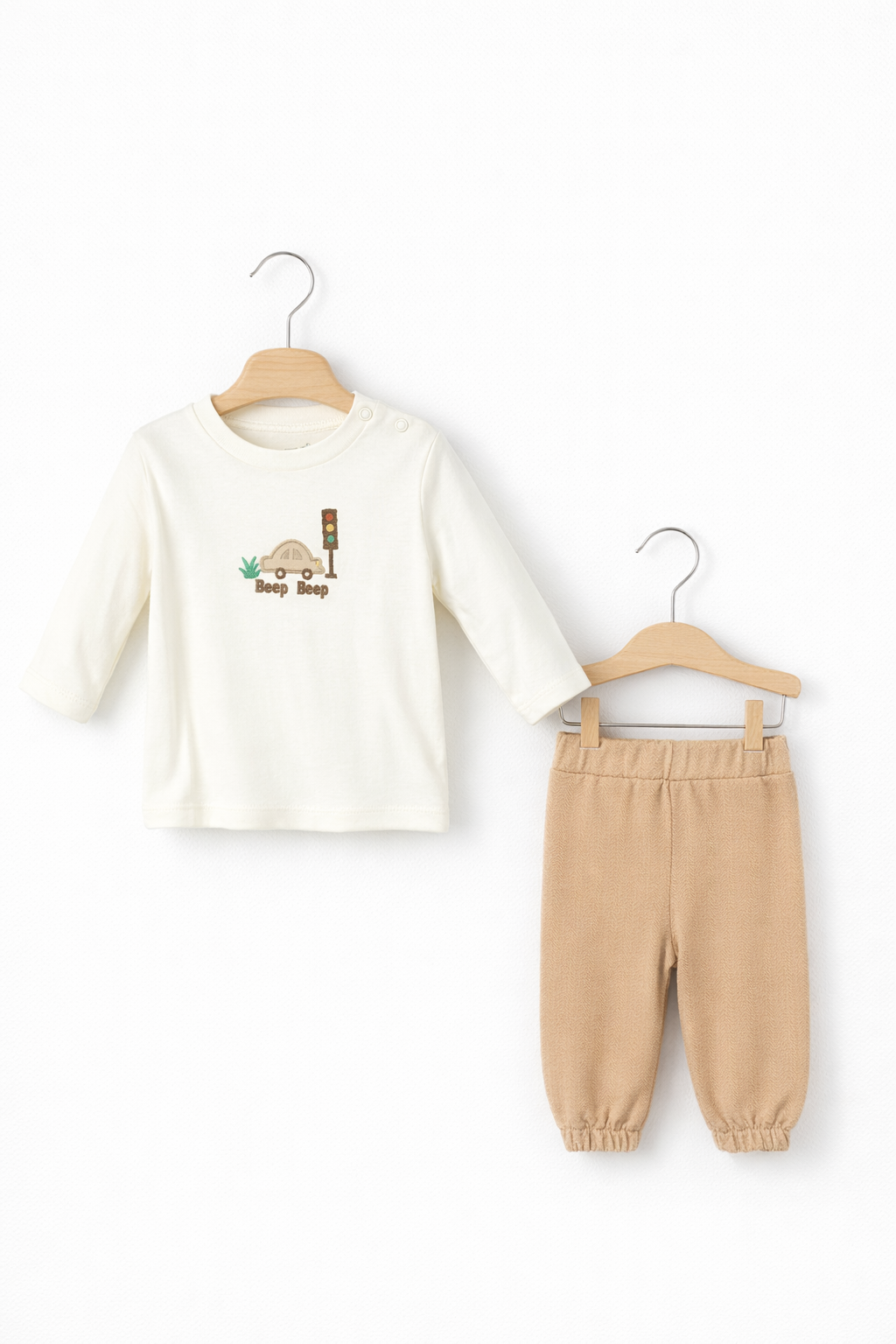 Acest set pentru băieți este creat pentru a oferi confort maxim și un aspect modern celor mici. Realizat din bumbac 100% de calitate premium, material respirabil și delicat, setul este potrivit pentru pielea sensibilă a bebelușilor și asigură libertate de mișcare pe tot parcursul zilei.